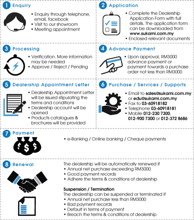 If you are interested to become our dealer to market educational products to schools and kindergartens, the procedures are simple. |